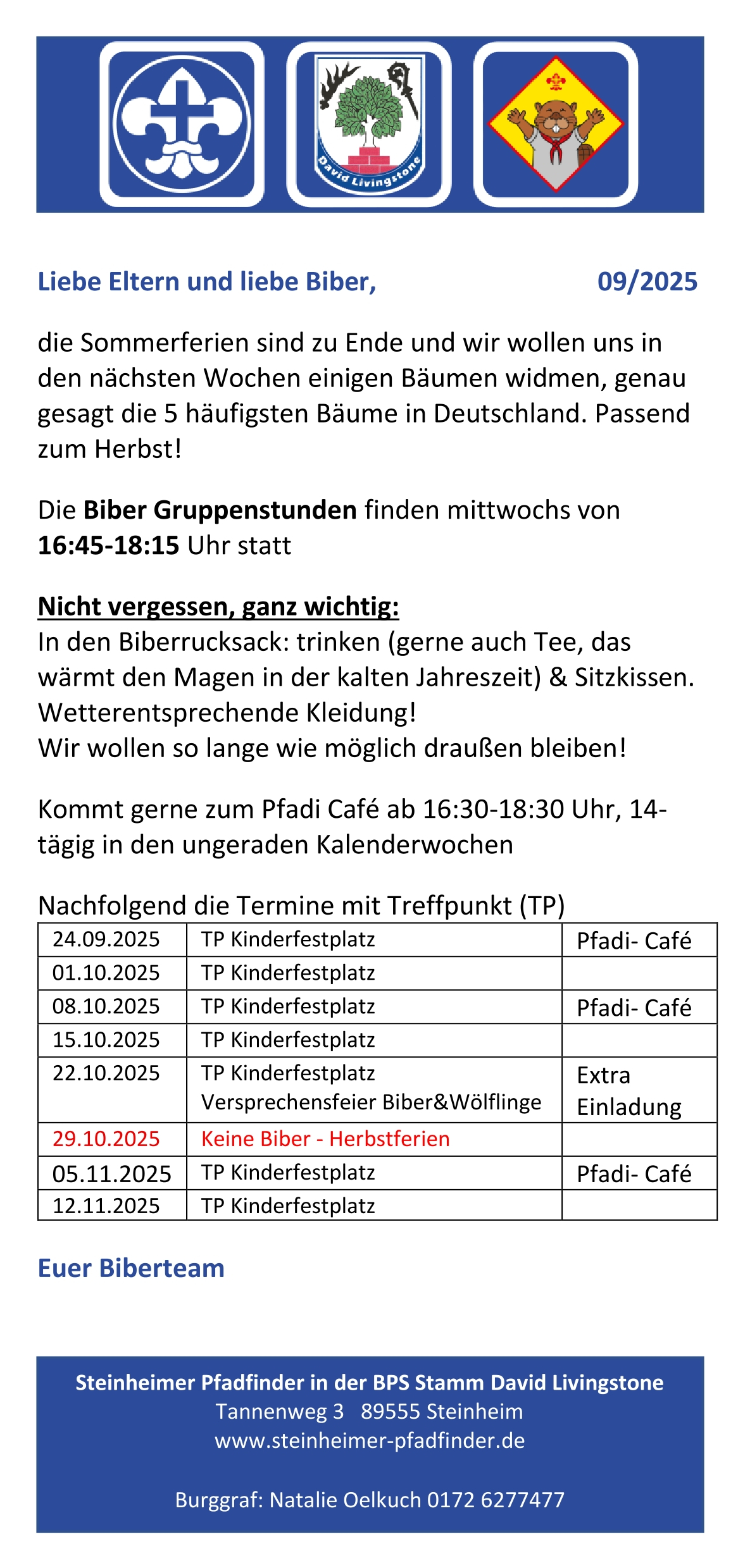 Treffpunkt je nach Wetter bei der Biberleitung anzufragen.
